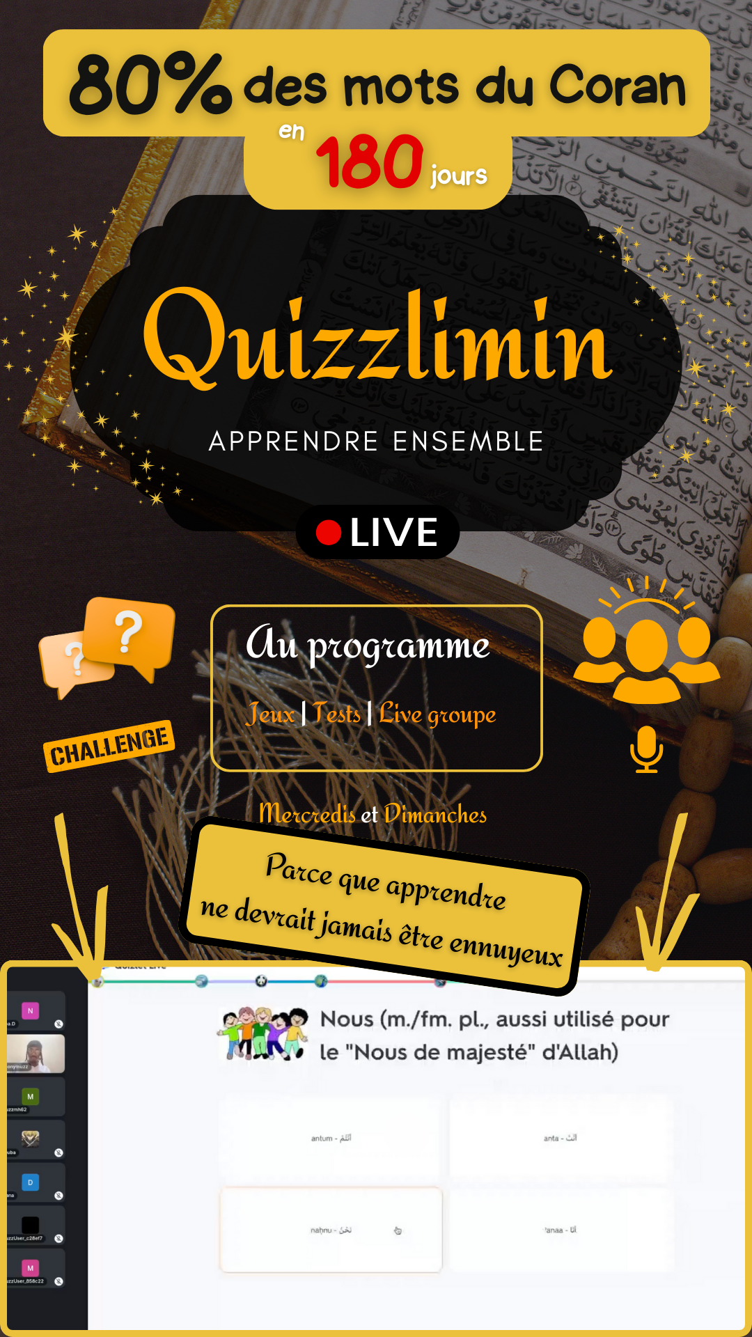Apprends tes 80% des mots du Coran et les bases de l’Arabe sur 180 jours